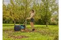 Der rechteckige Abfallbehälter lässt sich geschickt auf eine beliebige Seite legen. Dank seiner durchdachten eckigen Form wird ein Wegrollen verhindert. Mit einem Rechen können nun herabgefallene Blätter in einer bequemen und ergonomischen Haltung in den Laubsack gekehrt werden. Das ständige Bücken beim Einsammeln und Befüllen des Gartenabfallsacks bleibt somit erspart und ein rückenfreundlicheres Arbeiten wird ermöglicht.