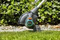 Der Kopf lässt sich im Winkel auf eine Arbeitsposition von 0, 10 oder 60 Grad anpassen. Auch schwer zugängliche Stellen wie zum Beispiel unter einer Gartenbank, einem Tisch oder unter einem Trampolin sind so sehr gut erreichbar.