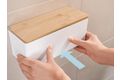 Bequeme und praktische Aufbewahrungslösung für das Badezimmer, die die tesa® Powerstrips Waterproof Technologie nutzt. Einfache Befestigung, kein Bohren erforderlich. Die mittelgroße tesa® Baboo Box passt in jedes Bad und ist perfekt, um Schmuck, Kosmetikartikel, Wattepads und andere Badutensilien ordentlich und übersichtlich aufzubewahren. Der Behälter ist aus hochwertigem weißem Kunststoff gefertigt, verfügt über eine Trennwand und hat einen Deckel aus Bambus. Die mitgelieferten tesa® Powerstrips Waterpoof XL Klebestreifen sorgen für eine wasserfeste Verklebung mit einer maximalen Haltekraft von 3 kg. Die Klebestreifen lassen sich leicht und rückstandsfrei wieder entfernen.