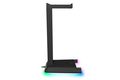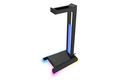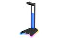 Der EXCELLO NX RGB Headset Stand ist eine praktische sowie stylishe Lösung für jedes Gaming-Setup. Sein platzsparendes Design sorgt dafür, das Headset immer griffbereit zu haben, ohne Unordnung oder lästigen Kabelsalat zu verursachen. Darüber hinaus schafft die mehrfarbige RGB Beleuchtung, die sich bequem über einen Touch-Sensor steuern lässt, eine angenehme Atmosphäre mit verschiedenen Beleuchtungsmodi (Beleuchtung abschaltbar). Zudem ermöglicht der integrierte USB-2.0-Hub das Anschließen von bis zu drei weiteren Geräten (1x USB-C und 2x USB-A). Dank der rutschfesten Unterseite steht der EXCELLO NX auch auf glatten Oberflächen jederzeit sicher und fest.