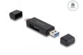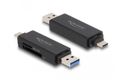 Dieser Card Reader von Delock verfügt über zwei Speicherkartenslots und ermöglicht das Lesen und Beschreiben von verschiedenen SD, MMC und Micro SD Speicherkarten. Über die USB Type-C™ oder die USB Typ-A Schnittstelle wird der Card Reader an einen PC oder an ein mobiles Gerät angeschlossen.