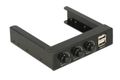 Dieses Front Panel von Delock dient dem Einbau in einen freien 3.5″ Schacht des Computers. Es verfügt über zwei USB 2.0 Ports sowie drei Drehregler zur Lüftersteuerung.