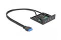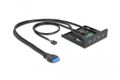 Dieses Front Panel von Delock ist zum Einbau in einen freien 3.5″ Schacht des Computers geeignet. Es verfügt über zwei USB 3.2 Gen 1 und zwei HD-Audio Ports. Die Anschlusskabel werden intern mit dem Mainboard verbunden.