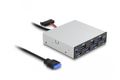 Dieser Hub von Delock kann in einen 3.5″ Schacht des PCs eingebaut werden. Er wird intern über einen USB Pfostenstecker an das Mainboard angeschlossen. Es können bis zu sieben USB Geräte, wie z. B. Docking Stationen, Card Reader, externe Gehäuse etc., angeschlossen werden.