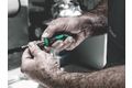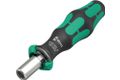 Extrem kleiner Bits-Handhalter mit intuitiv bedienbarer Ratschenfunktion. Die im Griff integrierte Ratschenmechanik mit Feinverzahnung (36 Zähne/Rückholwinkel 10°) vereinfacht und beschleunigt das Schrauben ohne mühsames Neuansetzen. Das "Zwirbeln" beschleunigt das Arbeiten. Die vollständig in den Griff eingebettete Knarrenmechanik sorgt für sehr handliches und müheloses Arbeiten. Ergonomisches Umschalten auf Rechts-/Links- oder 0-Position. Kraftform Plus Griff für ergonomisches Arbeiten, bei dem Blasen und Schwielen vermieden werden. Magnetischer Bithalter für Bits mit 1/4" Außensechskantantrieb.