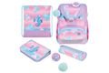 Eigengewicht unter 750g; ergonomisch geformte Rückenpolster; verstellbare Schultergurte; höhenverstellbarer Brustgurt; angenehme Passform; Orafol Reflexmaterialien; Klickschloss mit Reflektor; geräumiges Innenfach mit separatem Bücherfach; 1 Fronttasche; 2 Seitentaschen; stabile Bodenplatte; unbefülltes Schüleretui mit 2 Klappen; Faulenzer oval; Sportbeutel; Maße: 36 x 28 x 21 cm; Gewicht: ca. 750g; Volumen: ca. 16l; Material: Polyester; Applikation: 2 abnehmbare Patchies.