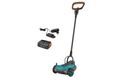 Mit dem Akku-Rasenmäher HandyMower 22/18V P4A Ready-To-Use Set war es noch nie so einfach, Deinen kleinen Garten gepflegt aussehen zu lassen. Dank einer Akku-Laufzeit von maximal 25 Minuten, die es Dir ermöglichen, Rasengrößen von ca. 50 Quadratmeter zu mähen, ist der Akku-Rasenmäher perfekt für kleine Rasenflächen geeignet. Sein leichtes und kompaktes Design macht das Mähen so einfach und mühelos wie Staubsaugen im Wohnzimmer.