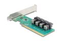 Diese PCI Express Karte von Delock erweitert den PC um vier SFF-8643 Anschlüsse. An diese Ports können z. B. SSDs mit U.2 Anschluss, mit Hilfe optionaler Kabel, angeschlossen werden.