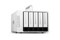 TerraMaster D5 Thunderbolt 3. Gesamte installierte Speicherkapazität: 0 TB. Gehäusetyp: Desktop. Anzahl der unterstützten Speicherlaufwerke: 5, Unterstützte Speicherlaufwerke: HDD & SSD, Unterstützte Speicherlaufwerk-Schnittstellen: SATA, unterstützte Speicherlaufwerksgrößen: 2.5,3.5". Breite: 225 mm, Tiefe: 176 mm, Höhe: 227 mm, Gewicht: 2,3 kg. Produktfarbe: Grau