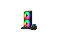 Cooler Master MasterLiquid 240 Core II. Typ: Flüssigkeitskühlung, Lüfterdurchmesser: 12 cm, Rotationsgeschwindigkeit (min.): 650 RPM, Rotationsgeschwindigkeit (max.): 1750 RPM, Geräuschpegel: 30 Sone, Luftstrom: 120 m³/h, Maximum Luftdruck: 2 mmH2O, Lagertyp: Gleitlager. Produktfarbe: Schwarz
