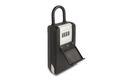 Der Tresor wird mit einem 4-stelligem Zahlencode verschlossen und dank einer Klappe vor Witterung und Schmutz geschützt.
