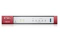 Zyxel USGFLEX50HP-EU0102F. Firewall-Durchsatz: 0,35 Gbit/s, VPN-Durchsatz: 0,09 Gbit/s. Wärmeableitung: 40,92 BTU/h, Gleichzeitiger Benutzer: 15 Benutzer, Mittlere Betriebsdauer zwischen Ausfällen (MTBF): 655130 h. Management-Protokolle: SNMP v1, v2c, v3. Ethernet LAN Datentransferraten: 10,100,1000 Mbit/s, WAN Port: Ethernet (RJ-45). Eingangsstrom: 2 A, DC input Spannung: 12 V, Stromverbrauch (max.): 12 W