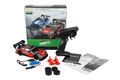 Im RTR-Set (Ready-to-Run) sind vier zusätzliche Gummireifen mit Felgen enthalten, die das Fahrzeug in Sekundenschnelle in einen rasanten Rennwagen verwandeln. Mit Geschwindigkeiten von bis zu 20 km/h gleitet der kleine Flitzer präzise über die Strecke. Ob mit Freunden um die beiliegenden Pylonen gekurvt wird oder mit den Gummireifen präzise jedes Hindernis umrundest - der vielfältige Fahrspaß ist garantiert. Das störungsfreie 2,4-GHz-Funksystem ermöglicht nämlich, gleichzeitig mit mehreren Kumpels an den Start zu gehen.
