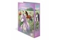 Der Motivordner "Pferdewelt" entführt in eine zauberhaft schöne Landschaft, die die Herzen von Pferdefans höher schlagen lässt. Die liebevollen Zeichnungen zeigen verspielte Pferde mit wallenden Mähnen, in die Zöpfe, Perlen und bunte Bänder eingeflochten sind. Auf einer blühenden Wiese tummeln sich mehrere dieser schönen Tiere, umgeben von lila Blumen, die dem Bild eine romantische Note verleihen. Der sanfte, zartlila Himmel schafft eine harmonische Atmosphäre und lädt zum Träumen ein. Dieser Ordner vereint Funktionalität mit einem ansprechenden Design und ist ideal für die Aufbewahrung von Schulunterlagen, kreativen Projekten oder persönlichen Erinnerungen. Die liebevolle Gestaltung strahlt Unbeschwertheit aus und vermittelt das Gefühl von Freiheit und Ruhe. Der Motivordner "Pferdewelt" bringt Freude in den Alltag und ist perfekt für alle, die die ländliche Idylle und die Liebe zu Pferden schätzen. Ein stilvolles Accessoire für kleine und große Pferdefans, das die Leidenschaft für diese fantastischen Tiere auf besondere Weise festhält.