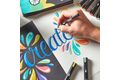 Erwecke deine künstlerischen Ideen mit Sharpie Creative Markers zum Leben! Die Acryl-Marker verzaubern mit wunderschöner lackartiger Tinte, die mit der Kontrolle eines Markers über die Seiten gleitet. Die wasserbasierte Tinte dringt nicht durch das Papier, sodass Arbeiten jederzeit sauber aussehen. Die leuchtenden Farbstifte sorgen auf hellen und dunklen Oberflächen für eine farbenfrohe Note und hinterlassen auf Papier, Metall, Holz, Keramik, Glas, Stein und Leinwand einen guten Eindruck. Die Farben lassen sich wunderschön kombinieren, um Arbeiten echte Tiefe zu verleihen. Mit den Markern mit Pinselspitze gehört auch das Grundieren ab jetzt der Vergangenheit an – einfach Deckel ab und los geht‘s!