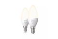 Philips Hue White E14 - Smarte Lampe Kerzenform Doppelpack - 470. Typ: Intelligentes Leuchtmittel, Schnittstelle: Bluetooth, Produktfarbe: Weiß. Unterstützte mobile Betriebssysteme: Android 10.0, iOS 15. Energieeffizienzklasse: F, Energieverbrauch pro 1.000 Stunden: 6 kWh, Stromverbrauch (Standby): 0,5 W. Breite: 39 mm, Tiefe: 39 mm, Höhe: 106 mm. Verpackungsart: Box, Verpackungsbreite: 7,2 mm, Verpackungstiefe: 7,2 mm