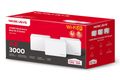Mercusys HALO H3000X(2-PACK). Produktfarbe: Weiß, Antennentyp: Intern, Produkttyp: Mesh-System. WLAN-Band: Dual-Band (2,4 GHz/5 GHz), Top WLAN-Standard: Wi-Fi 6 (802.11ax), WLAN Datentransferrate (max.): 2976 Mbit/s. Breite: 128 mm, Tiefe: 81 mm, Höhe: 83,7 mm. Anzahl enthaltener Produkte: 3 Stück(e), Anzahl der enthaltenen Einheiten: 3 Stück(e)