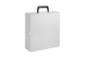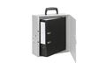 Nimmt DIN A4 Ordner sicher in Verwahrung. Gefertigt aus pulverbeschichtetem Stahlblech mit mattierter, unempfindlicher Oberfläche. Sicherheitsschloss auf der Längsseite mit zwei Schlüsseln, deren Nummer auf dem Schloss eingraviert ist. Maße: 36,5 x 33,0 x 11,0 cm, Innenmaße: 34,0 x 30,4 x 11,0 cm.