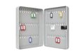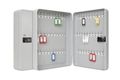Die kompakten Schlüsselschränke sind mit einem Sicherheitsschloss ausgestattet, das über einen 3-stelligen Zahlencode individuell einstellbar ist. Damit kann auch einer größeren Anzahl von Nutzern der Zugriff gewährt und jederzeit korrigiert werden, ohne dass Schlüssel notwendig sind. Gefertigt aus robustem, pulverbeschichtetem Stahlblech mit mattierter, unempfindlicher Oberfläche. Die feststehenden Hakenleisten können mit den beigefügten selbstklebenden Nummernstreifen gekennzeichnet werden.