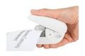 Mit pfiffiger und simpler Funktionsweise: Eine vom Hefter gestanzte Papierlasche wird automatisch durch einen ebenfalls gestanzten Schlitz gezogen. Das ergonomische Produktdesign und der druckverstärkende Mechanismus sorgen für müheloses Heften. Bis zu fünf Blatt Papier (80 g/qm) können so schnell und einfach zusammengeheftet werden, ganz ohne Klammern! Durch das transparente Fenster ist die Heftung gut zu positionieren. Gehäuse aus Recycling-Kunststoff. Farbe: Weiß. Maße: 8,3 x 3,3 x 7,4 cm. Lieferung auf SB-Karte.