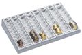 WEDO Hartgeld-Zählbrett mit 8 einzeln herausnehmbaren Münzrillen, eingesetzt in einen Metallboden.