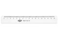 Transparentes Kunststoff-Lineal aus Polystyrol mit Tuschkante und geprägter 16-cm-Skala. Lieferung in hängefähiger Einzelverpackung.