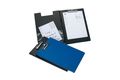 Stabile Klemmbrettmappe aus Karton mit Folienüberzug und transparenter Einstecktasche für Notizen im Deckel links.