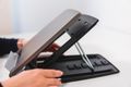 Der Ergo-Q 330 Circular ist ein mobiler Laptop-Ständer mit integriertem Dokumentenhalter