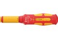 VDE-isolierter Drehmomentschraubendrehergriff mit 9 mm Sechskantaufnahme; ausschließlich für Wera Kraftform Kompakt VDE Wechselklingen. Für professionelles Schrauben/Feinjustage UND für drehmomentkontrolliertes Schrauben. Überrutschende, nicht überziehbare Drehmomentfunktion für Rechts-/ Linksanzug. Mit fünf wählbaren Anzugsdrehmomenten Rechts/Links (0,4; 0,8; 1,2; 1,6; 2,0 Nm), die extrem schnell eingestellt werden können. Eine Fest-Stellung (Torque Lock) für unbegrenzte Löse-/Anzugsmomente. Mit Freilaufhülse für eine gute Führung des Werkzeugs während des Schraubvorgangs.