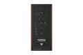 einer Mesh-Frontblende mit Holzakzenten und wird mit vier