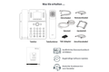 Telefongerät mit Netzgerät (Steckerznetzteil) Telefonhörer mit Hörerkabel Ausführliches Benutzerhandbuch mit Bildern Telefon-Anschlusskabel 5m, TAE-Adapter, Netzwerk-Kabel