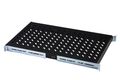 Die Fachböden zum Festeinbau lassen sich einfach an den vorderen 483 mm (19“)-Profilschienen Ihres 483 mm (19“) Netzwerk- oder Serverschrankes installieren. Durch das stabile, perforierte Lochblech mit einer hohen Traglast, sind sie die optimale Tragfläche für nicht 483 mm (19“) einbaufähige Komponenten.