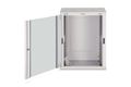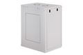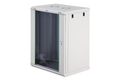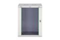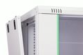 Die Netzwerkschränke zur Wandmontage der Dynamic Serie wurden für einen einfachen und besonders kostenoptimierten Netzwerkausbau entwickelt. Dach, Boden und Rückwand eines jeden Schrankes sind mit einem vorgestanzten Kabeleinlass ausgestattet. Für die Aufnahme eines Lüftermoduls wird das Dachchassis ebenfalls mit einem ausgestanzten Bereich versehen. Zwei Paar galvanisierte, mit in beide Richtungen ablesbare Höheneinheiten beschriftete 483 mm (19")-Profilschienen sind im Inneren verbaut. Diese lassen sich in der Tiefe verstellen. Jeder Schrank ist eine robuste Stahlkonstruktion aus bis zu 1,5 mm starkem Stahlblech. Die Farbgebung erfolgt in Form von elektrostatischer Pulverbeschichtung in den Standardfarben Grau (RAL 7035) und Schwarz (RAL 9005). Abnehmbare Seitenwände sowie die abschließ- und abnehmbare Fronttür, verbessern die Zugänglichkeit. Ein Türanschlagswechsel kann vorgenommen werden. Die Wandmontage erfolgt in zwei einfachen Arbeitsschritten: Das mitgelieferte Montageblech wird an die Wand geschraubt und im Anschluss mit dem Gehäuse verbunden.