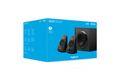 Zwei schnell aufgebaute Satelliten und ein leistungsstarker Subwoofer sorgen für einen vollen Sound – auch in großen Räumen.