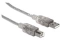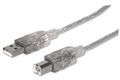 Das Manhattan Hi-Speed USB B Anschlusskabel verbindet schnell und einfach USB Peripherie und Accessoires mit einem PC oder Notebook. Es eignet sich ideal für die Nutzung mit externen Ausgabegeräten, Hubs und anderen Plug&Play Produkten. Mit einer Datenübertragungsrate von bis zu 480 Mbit/s in Verwendung mit einem Windows oder Mac System sorgt das Manhattan Hi-Speed USB B Anschlusskabel für eine schnelle und zuverlässige Datenübertragung. Vergoldete Kontakte samt vergossener PVC Tülle und Zugentlastung sorgen für eine stabile Verbindung, maximale Leitfähigkeit und minimalen Datenverlust bei verringerten EMI-Interferenzen.
