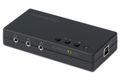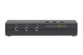 Der Nachfolger des Megasellers Aureon 5.1 USB macht schon vom Design her eine gute Figur: Mit mattschwarzem Gehäuse ist die USB-Soundkarte von zeitloser Eleganz und findet mit gerade einmal 12 x 6 cm auf wirklich jedem Schreibtisch Platz. Neben den Anschlüssen für die drei Boxenpaare, den Subwoofer und den Center-Speaker haben die Spezialisten für guten Sound von TERRATEC der Aureon 7.1 USB auch einen digitalen I/O zur Ausgabe der Mehrkanalformate AC3 und DTS spendiert. Zwei Buchsen für Mikrofone und ein Line-In komplettieren die Anschlussvielfalt.