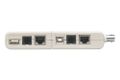 Der 4-in-1 Kabeltester von Intellinet Network Solutions ist ein günstiges und vielseitiges Werkzeug zum Testen von vier gängigen Netzwerk- und Computerkabeln: Ethernet (RJ45), RJ11, BNC und USB. Bei einer Reichweite bis zu 180 m prüft er auf durchgängige Verbindungen sowie auf offene Drähte und Kurzschlüsse. Die jeweiligen Fehler und betroffenen Pins können auf den Geräte-LEDs abgelesen werden.