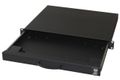 sehr stabile Tastaturschublade Metall lackiert zum Einbau in 19"-Schränke kugelgelagerter Tastaturauszug Sicherheitsschloss mit zwei Schlüsseln stabiler Handgriff aus Metall Lieferung inkl. Schraubenset zur Befestigung an den vorderen Holmen im 19"-Schrank optional: zwei zusätzliche Montageschienen zur Befestigung an den vorderen und hinteren Holmen im 19"-Schrank (siehe u.g. Zubehör)